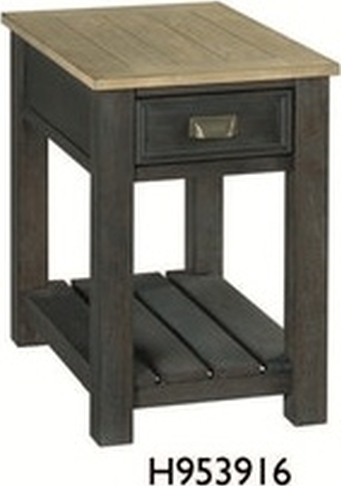 The Alexvale Lyle Creek Wood End Table is crafted of rubberwood solids and oak veneers. Features a contrasting finish with its dark base and light tabletop and ample storage with its drawer and spacious base shelf.Read More