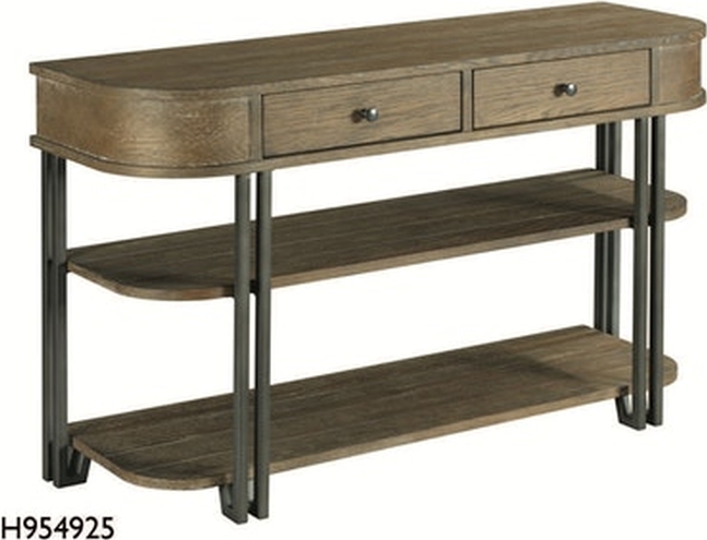 The Alexvale Saddletree Wood Console Table is crafted of rubberwood solids and oak veneers. Features unique architectural legs and ample storage with its two drawers and two spacious shelves.Read More