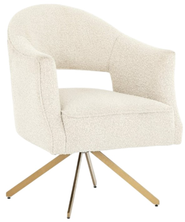 A late-Seventies form gets a feminine refresh tailored for the modern desk. White poly-blend upholstery perfectly curves, flaunting a posterior cutout for intrigue. Polished brass legs taper at a slant for retro effect, while a swivel base brings sensibility to the modern office.Read More