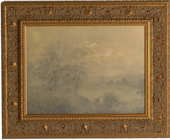 Materials: Decorative gilded gold pine, matte canvas, gallery bracer