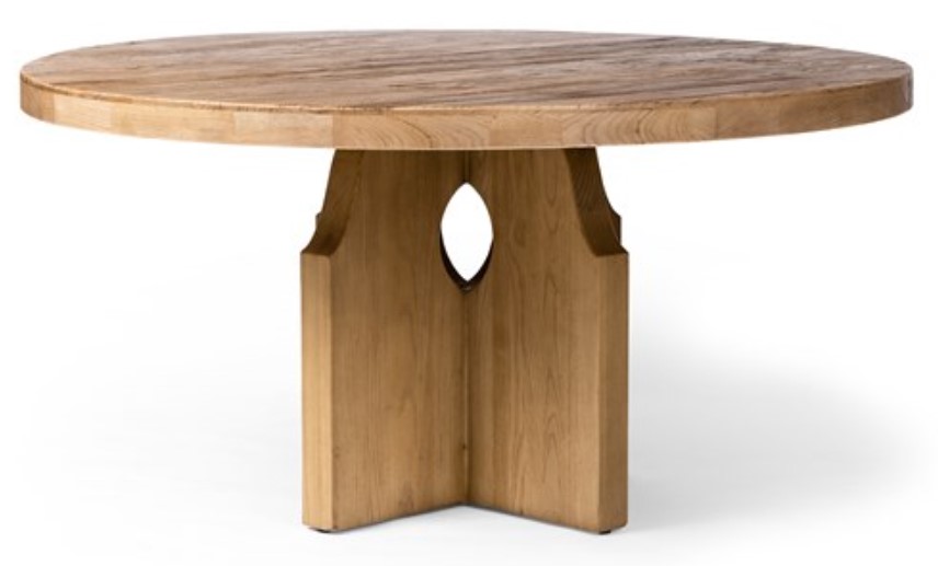 The Four Hands Allandale natural elm round dining table is an exquisite addition to any dining space. Crafted from natural elm wood, its round tabletop exudes rustic elegance. The table's sturdy pedestal base provides stability and timeless charm, making it perfect for intimate gatherings or larger dinner parties, creating a warm.Read More