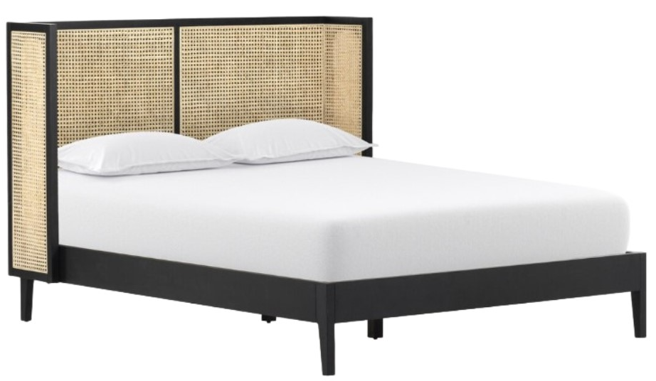 Mixed materials bring a modern refresh to retro styling. A curved headboard crafted from solid rubberwood in brushed ebony frames a textured natural cane inlay, offering a warm and striking contrast for an elegant, vintage-inspired look.Read More