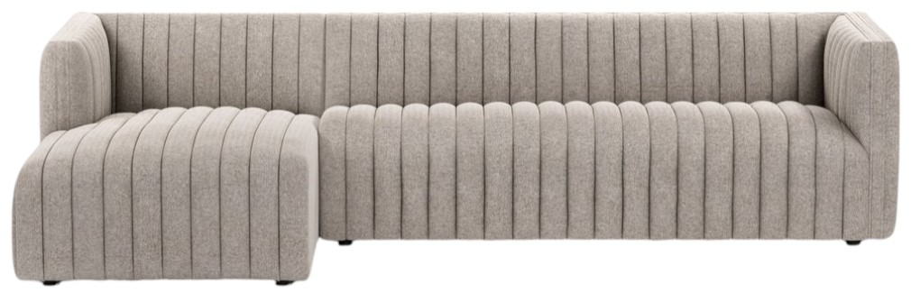 A dramatically channeled sofa with white linen-blend upholstery offers a crisp, clean look and sumptuous sit. Two-piece sectional with left arm-facing chaise, perfectly sized for smaller spaces.Read More