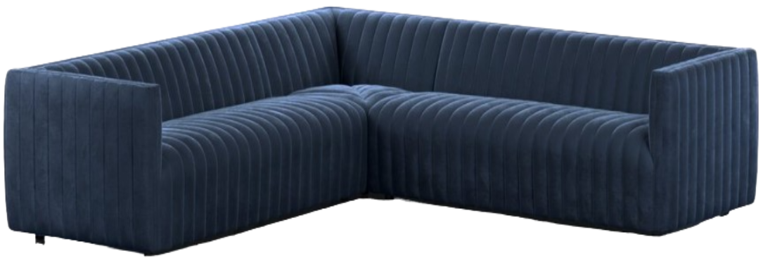 This Four Hands Augustine 3-Piece 105" Sectional has a dramatically channeled sofa wrapped in navy upholstery creates a mature, clean look inspired by modern menswear. This three-piece sectional is perfectly sized for smaller spaces.Read More