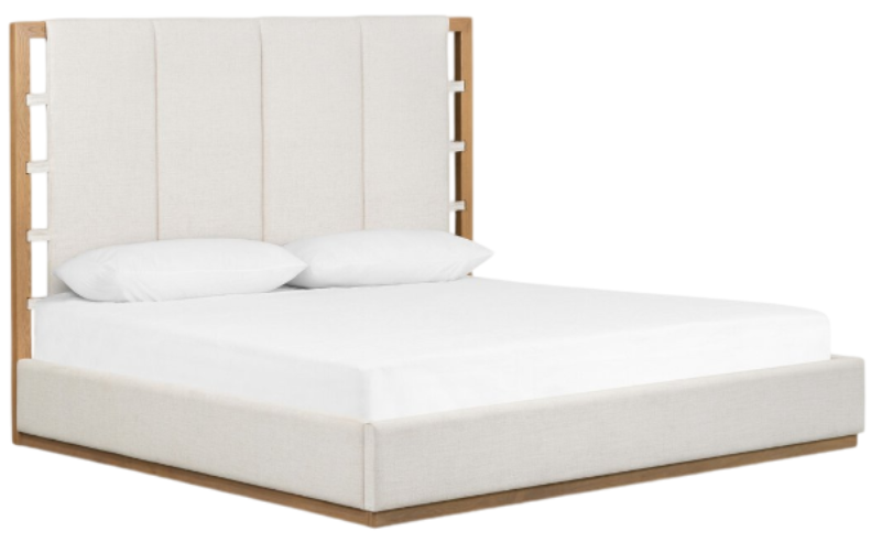 Take bedroom styling to new heights. Framed by a plinth-style base of burnished solid oak, light, linen-like upholstery creates a well-tailored headboard, with vertical channeling and unique strap detailing. Its high-quality materials and refined finish offer both elegance and durabilityRead More