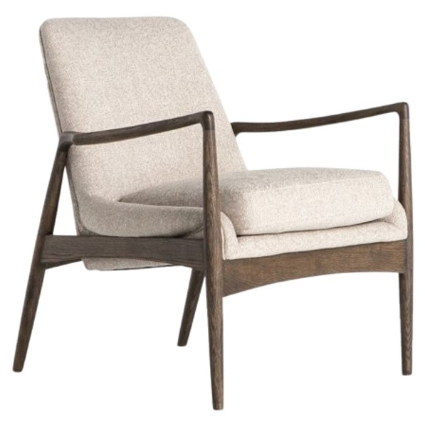 Dramatic arms and a deeper seat offer relaxation with mid-century modern sophistication. Sculpted frame adds an architectural feel to light camel upholstery. It can be placed in living rooms, bedrooms, or hallways, providing both comfort and functionality. Perfect for reading, relaxing, or complementing existing decor.Read More