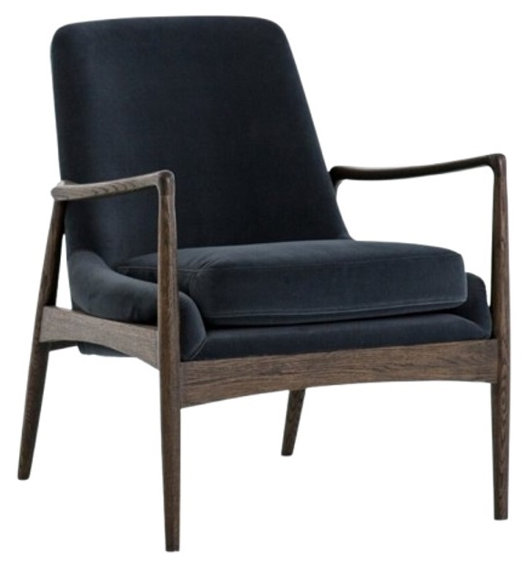 Dramatic arms and deep seat offer relaxation with mid-century modern sophistication. Sculpted cedar frame adds an architectural feel to neutral-toned velvet upholstery. It can be placed in living rooms, bedrooms, or hallways, providing both comfort and functionality. Perfect for reading, relaxing, or complementing existing decor.Read More