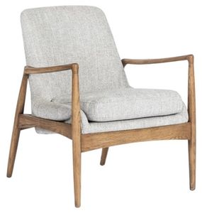 Dramatic arms and a deeper seat offer relaxation with mid-century modern sophistication. Sculpted framing of a toasted nettlewood adds an architectural feel to soft-but-textural upholstery in a neutral light grey.Read More