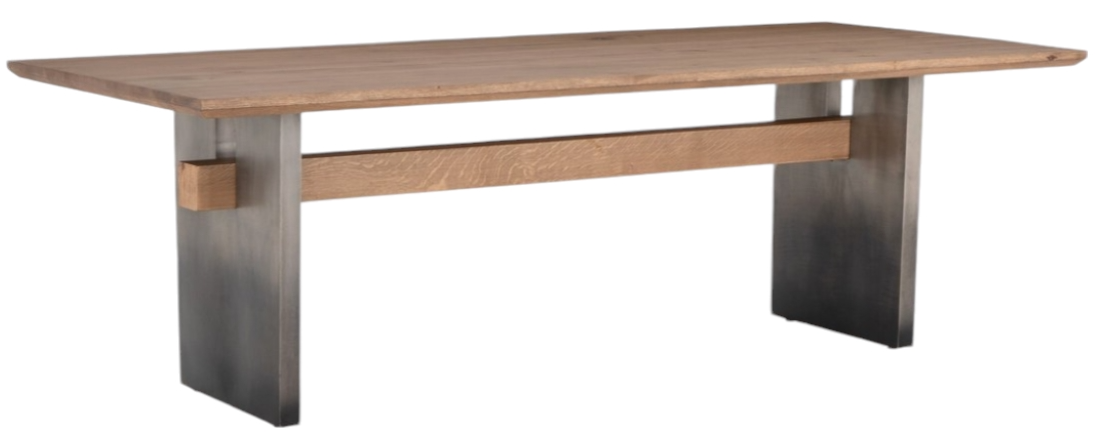 Wide, plank-style legs of pewter-finished steel features an ombre pattern for eye-catching effect, with an intersecting beam adding intrigue. A rectangular soft-grey oak tabletop flaunts its materials' natural graining, for a richly organic takeaway.Read More