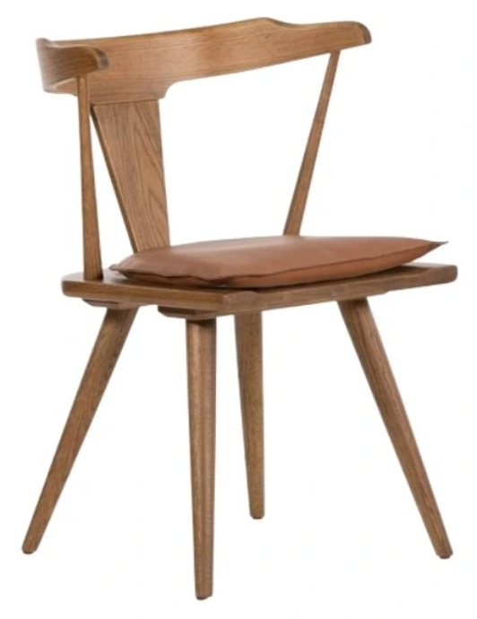 A modern take on the traditional mid-century Windsor, featuring a sand-colored finish and sculptural oak silhouette. Meanwhile, a loose seat cushion of tan top-grain leather works comfort and contrast into the mix.Read More