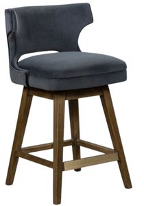 Shapely seating upholstered in deep navy velvet tops splayed parawood legs, while its modern wing shape brings contemporary presence to the table. Memory swivel adds ease and comfort. And this will be a great fit.Read More
