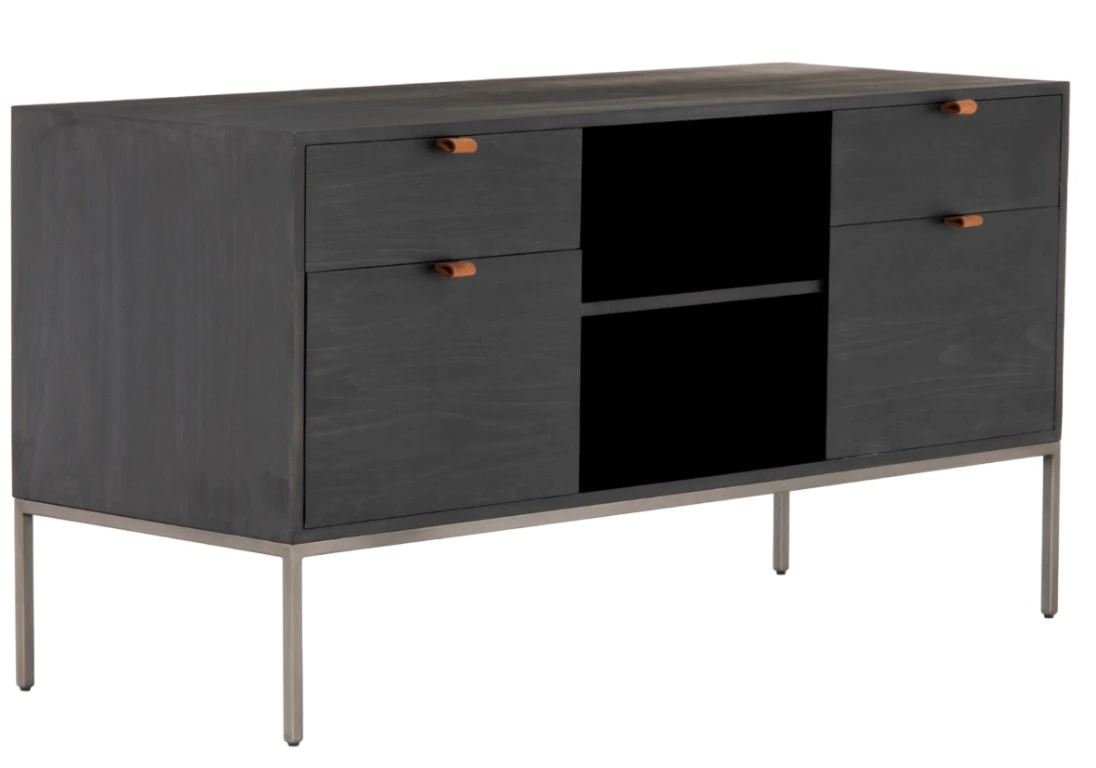 Inspired by clean mid-century design, a modular filing credenza of black-finished solid poplar brings roomy storage space to the modern office, with a fully finished back plus metal-secured leather pulls for an element of surprise. Great solo or paired with matching desk or filing cabinet.Read More