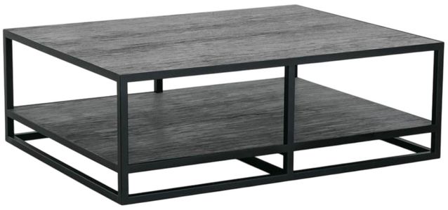 Rowe® Bartola ink cocktail table with ore base features a wire-brushed European oak veneer top in a deep Ink finish, paired with a sleek Ore metal base. Its rectangular design includes a spacious lower shelf for décor or storage, with adjustable glides ensuring stability and everyday functionality in any living space.Read More