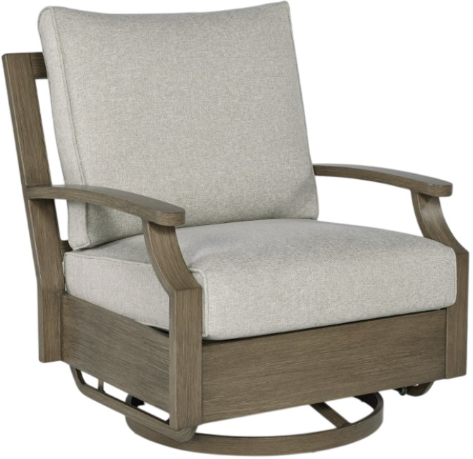 Experience the perfect combination of durability and style with this outdoor swivel glider chair. Enhanced by sumptuously soft cushions and throw pillows wrapped in high-performing, low-maintenance Nuvella+™ fabric, it's designed to provide you with years of enjoyment. This delightful addition to your outdoor space creates an oasis where comfort and beauty thrive.Read More