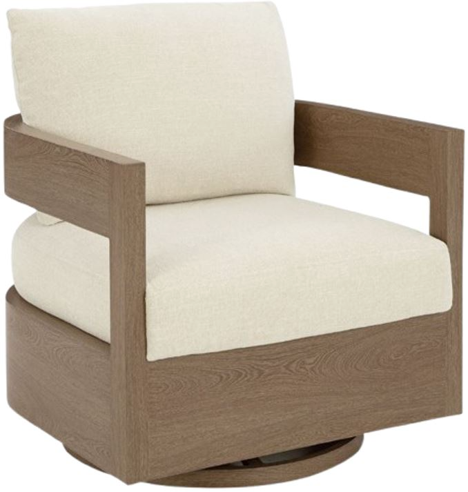 Elevate the appeal of easy-breezy living with this outdoor swivel glider chair. Made to look like wood yet durable enough to weather the elements, it's sure to serve you and your besties well, year after year. The gently curved chair features cushions wrapped in Nuvella+™ high-performance fabric for plush refinement.Read More